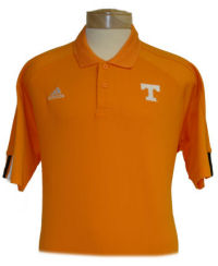 Orange Climacool Polo with Power T and Adidas stripes on sleeve