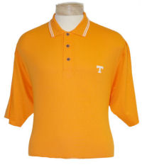 Orange Polo with White Power T and Stripes on Collar