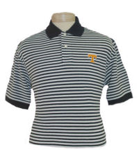 Navy and White Stripe Polo with Orange Power T